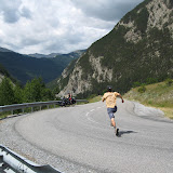 Le tunnel du col de Tende étant interdit aux vélos, nous étions obligés de passer plus haut, suivant les remontées mécaniques au chômage technique et les pistes caillouteuses des 4x4. Heureusement, nous étions rechargés à bloc après une invitation à l'italienne à boire un coup de "Vino! Vino!" dans la montée. Que d'attention!